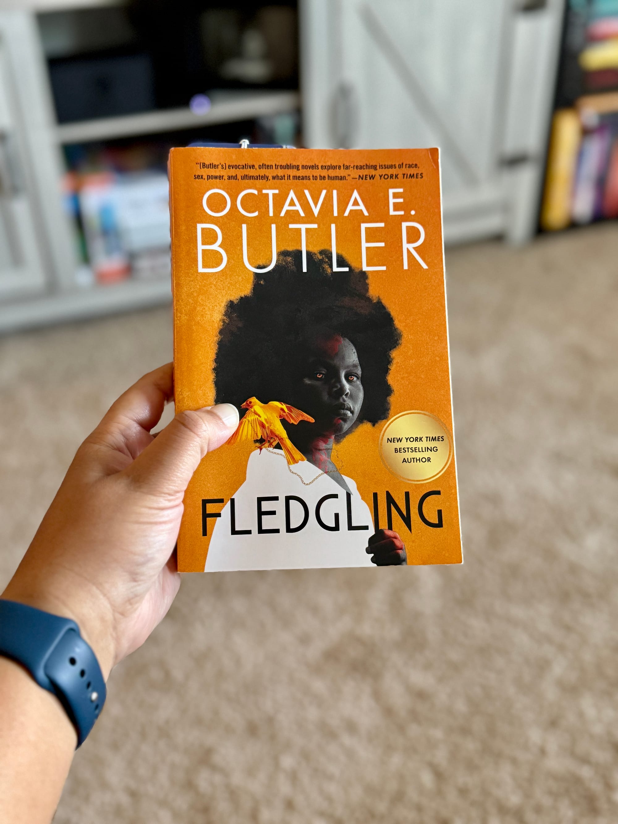 - Fledgling. Completed. This book is a mixed bag for me. I have enjoyed the different thoughts it brings to mind. I have had to put the book down and think about what it says, how I feel about it, and my conclusions, and then I was right back into it. One main critique is that Butler does a lot of telling and not showing. This book has a lot of exposition. However, for the most part, I enjoyed the book. My full review is here. I would not recommend this book to everyone.