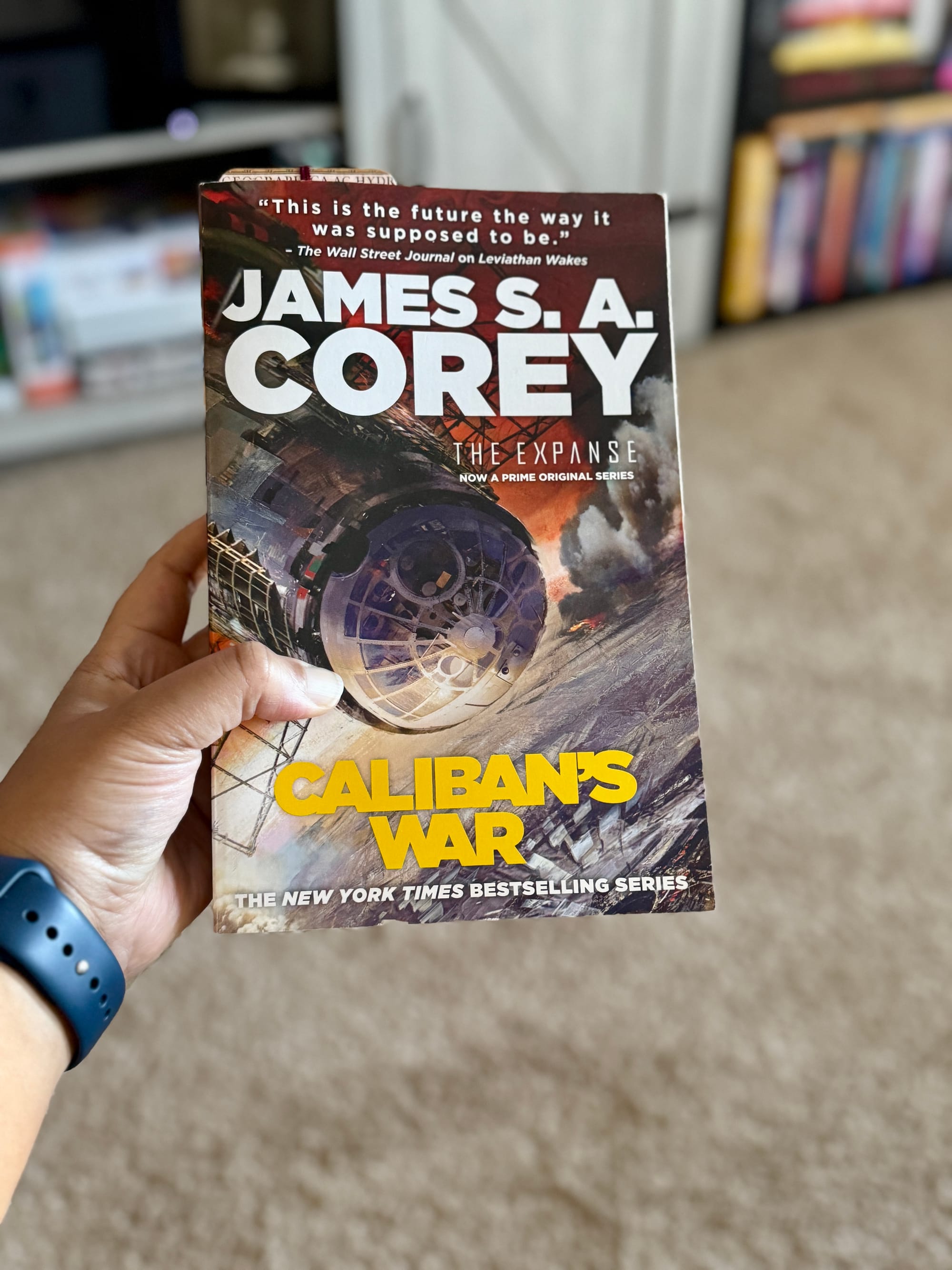 - Caliban's War. Completed. The book starts off action-packed, just like the first book. I enjoyed catching up on the Roci crew and getting to know Prax, Bobbi, and Asavarla. The mystery element and political posturing were fun to read. However, having that many points of view was kind of jarring, especially in the beginning when they were all separated. The story would ramp up for one character, and then we would switch to another and have to wait a few chapters to see what was happening. While this provides a broader view of the events taking place, it can be jarring if you prefer one POV over another.