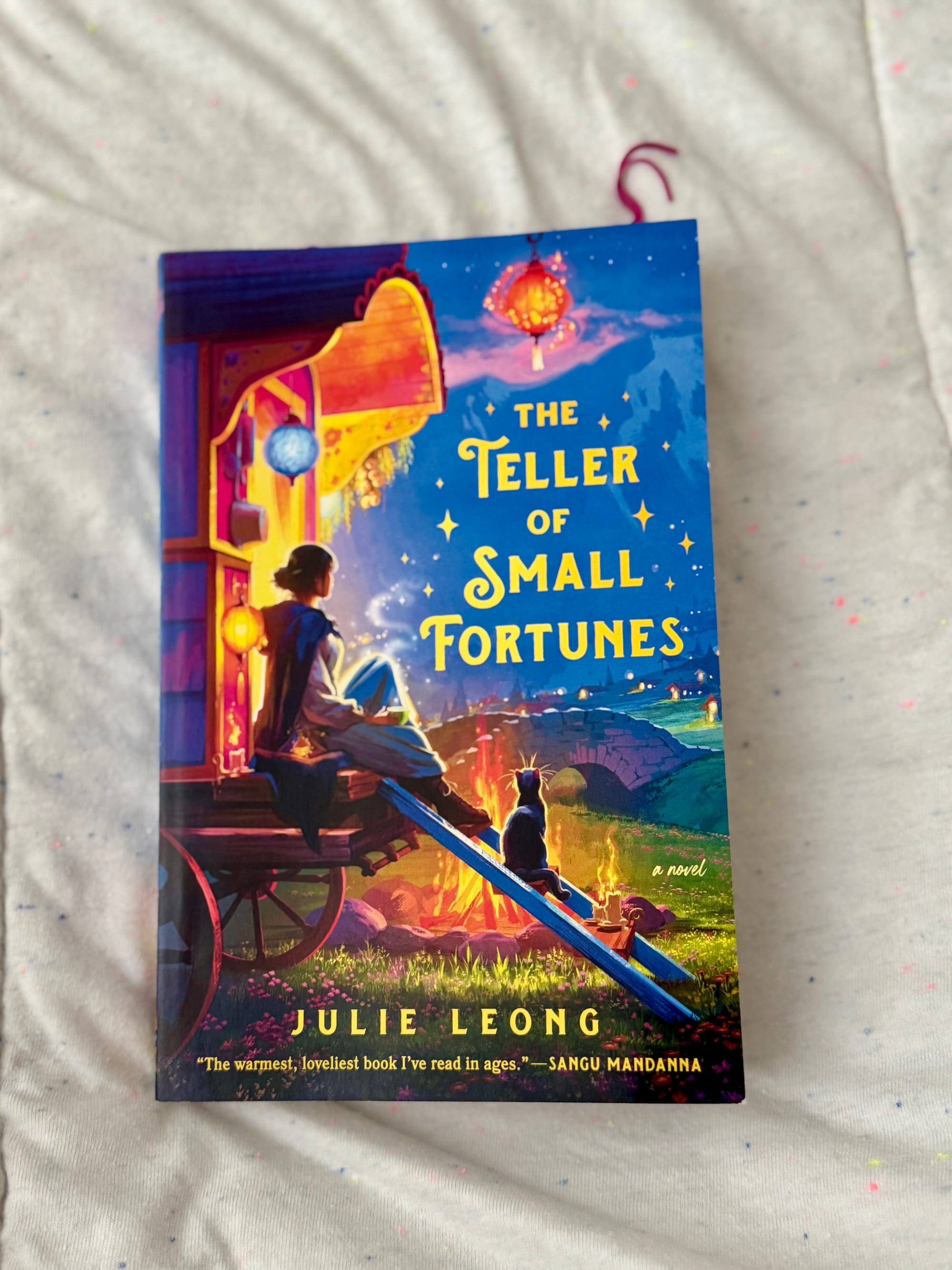 - The Teller of Small Fortunes by Julie Leong. This is a buddy read with a coworker, and at this point, we both are feeling as if nothing is happening. This is the first time we've read a book that is a lighthearted, cozy fantasy. This is out of my comfort zone, but I am willing to give it a try. In the story, we follow Tao, a wandering fortune teller. So far, I have been introduced to the characters that she will eventually see as family. There are some questions I have regarding where the story is going that keep me intrigued.